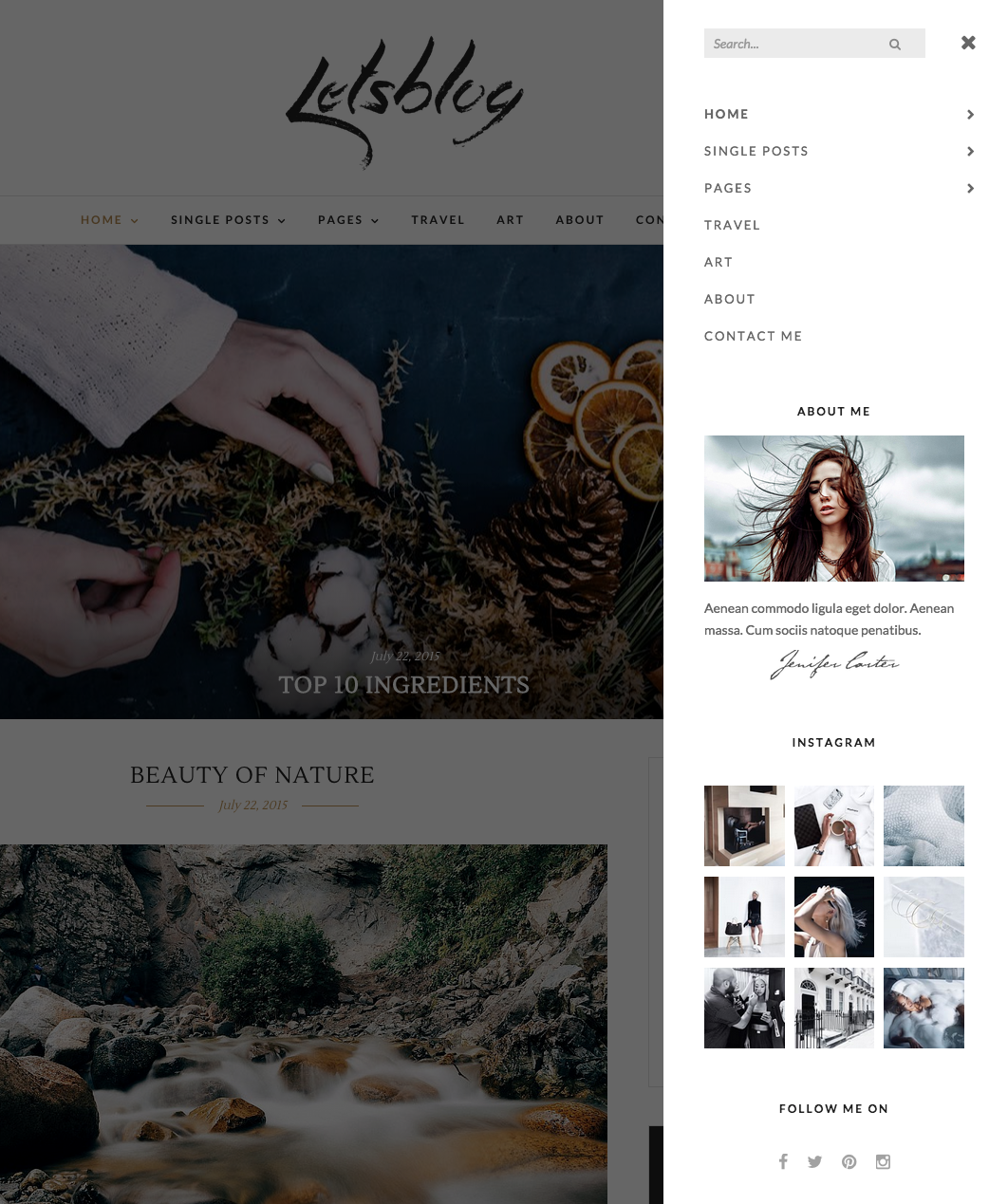 Theme has 4 menu options main, top bar, footer and side menus. With side menu you can organise each menu items and it’s primary menu for mobile devices. You can also add widgets to its sidebar.